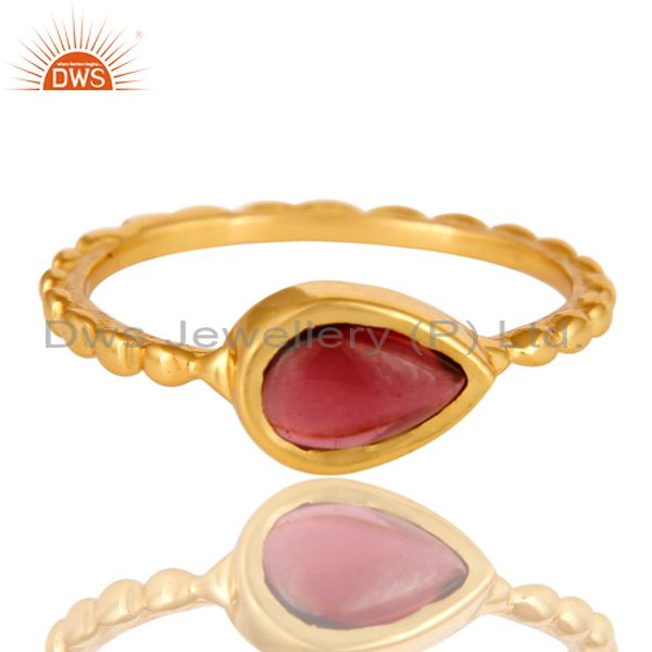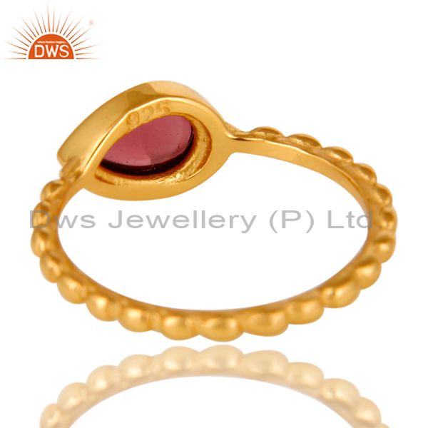 Shiny 14K Yellow Gold Plated Sterling Silver Garnet Hammered Stacking Ring
