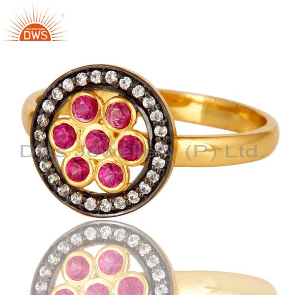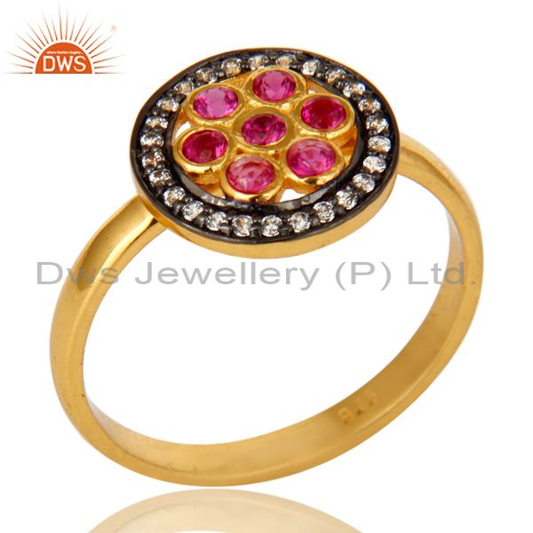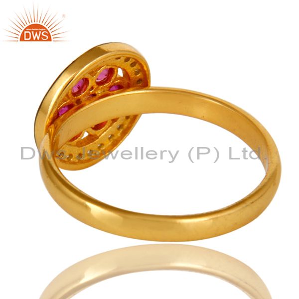 Shiny 14K Yellow Gold Plated Sterling Silver Ruby Cubic Zirconia Cocktail Ring