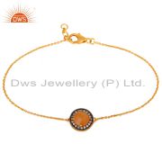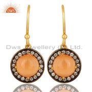 Shiny 18K Gold Plated Sterling Silver Peach Moonstone And CZ Stackable Ring