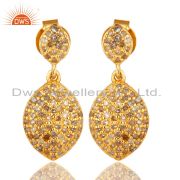 Shiny 18K Yellow Gold Plated Sterling Silver Pave Set Diamond Statement Ring