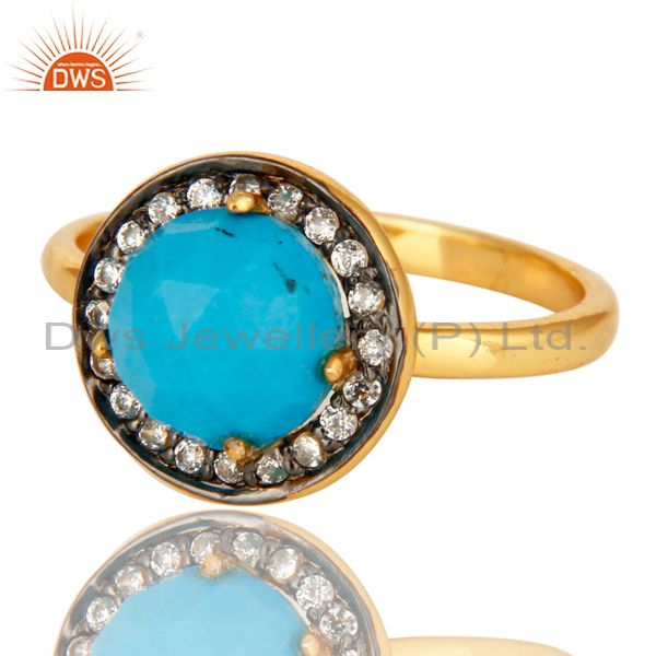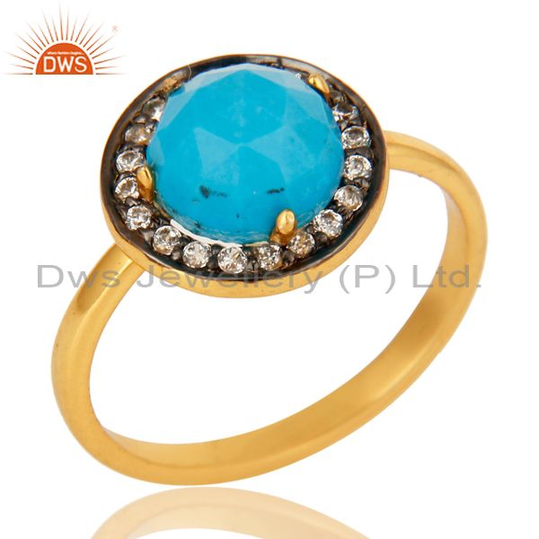 Shiny 18K Yellow Gold Plated Sterling Silver Turquoise And CZ Stackable Ring