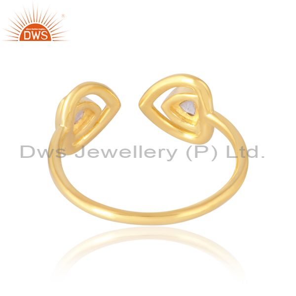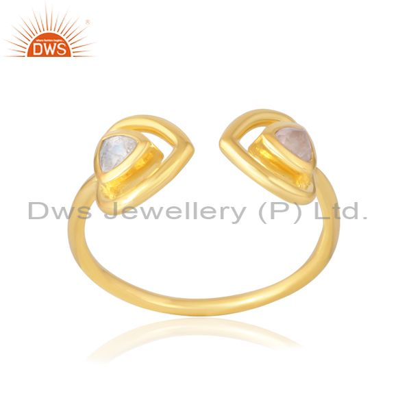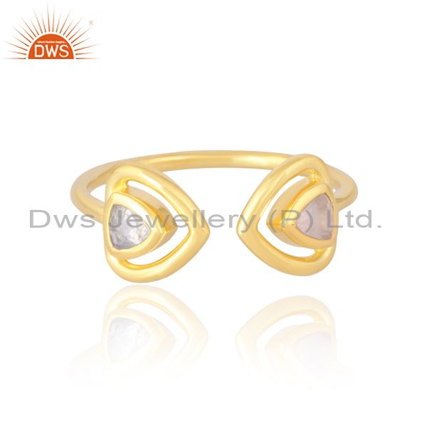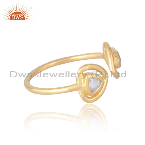 Silver 18K Gold Rainbow Moonstone Rose Quartz Trillion Ring