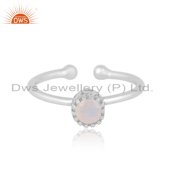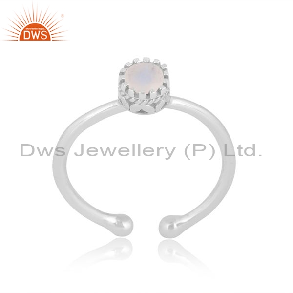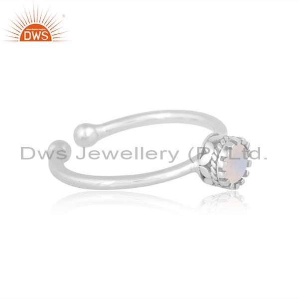 Silver Adjustable Ring With Rainbow Round Cut Moonstone