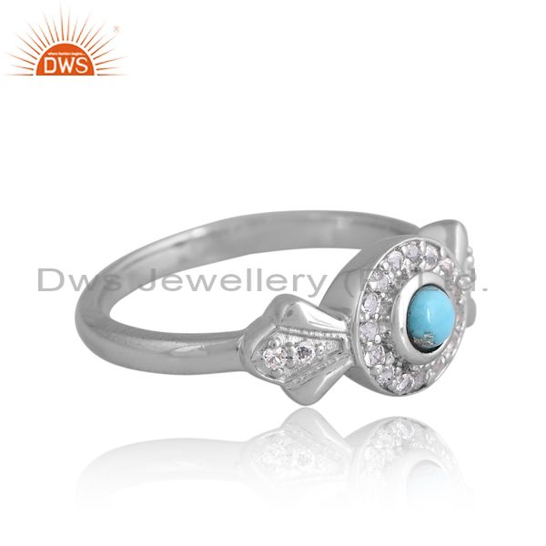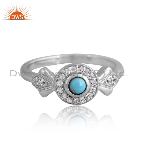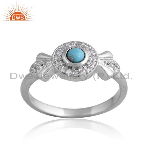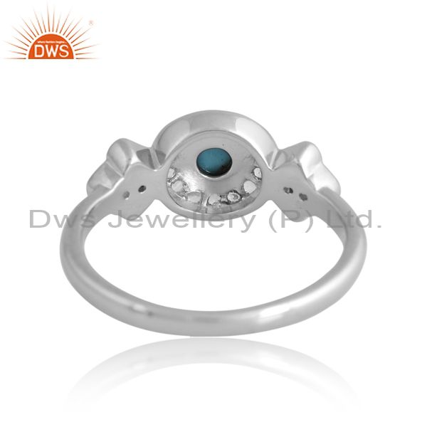 Silver Antique Ring With Arizona Turquoise And White Topaz