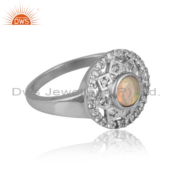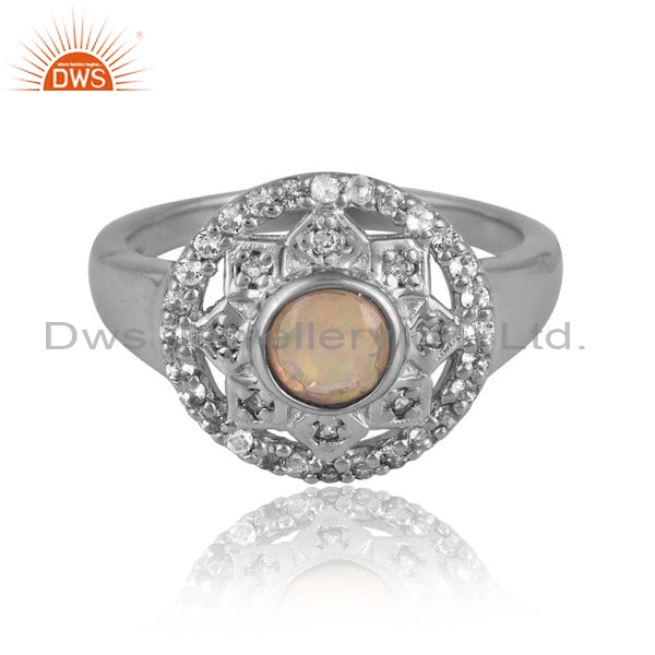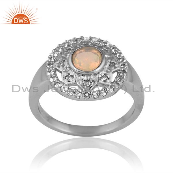 Silver Antique Ring With Round Ethiopian Opal And Topaz