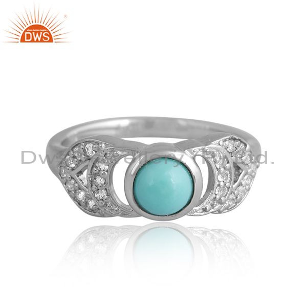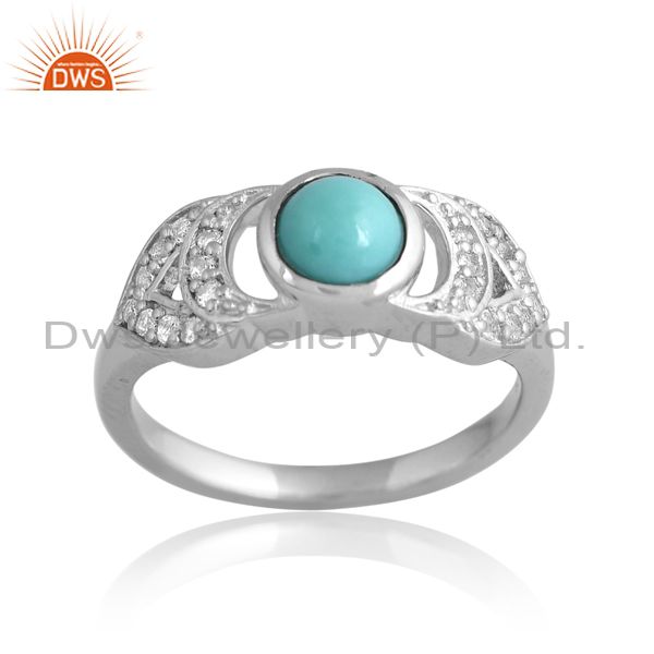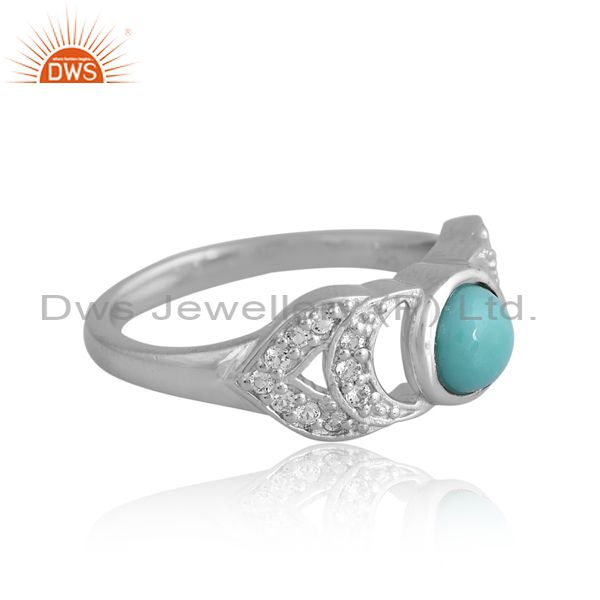 Silver Antique Ring With White Topaz And Arizona Turquoise