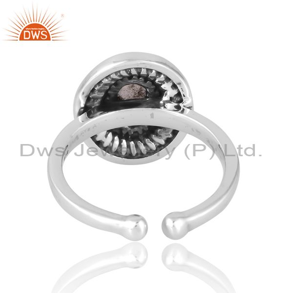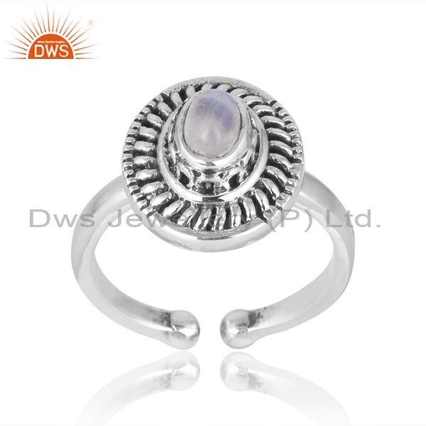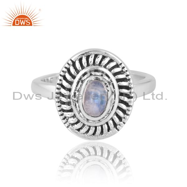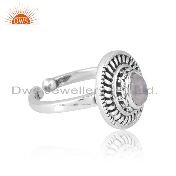 Silver Band With Oxidised Design And Oval Rainbow Moonstone