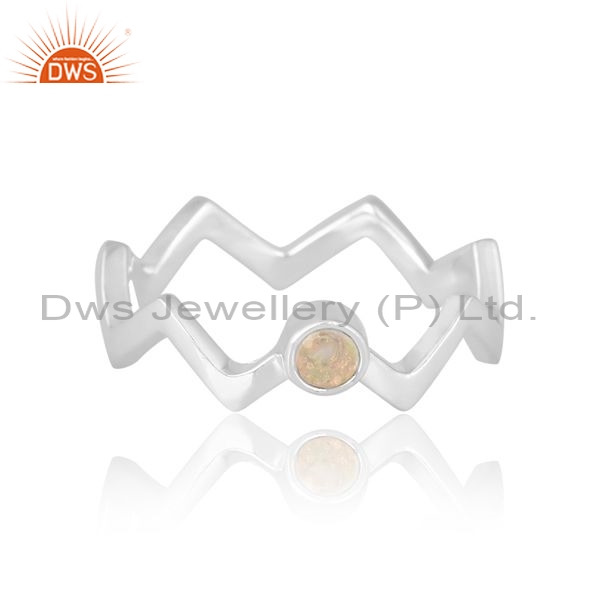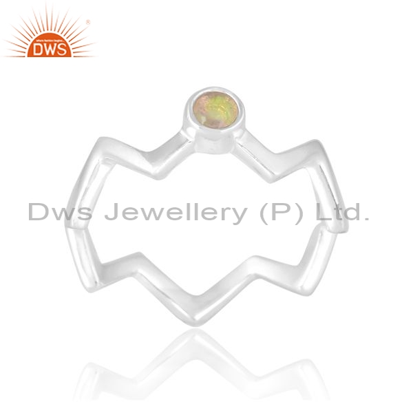 Silver Crown Ring With Ethiopia Opal Round Cut Stone