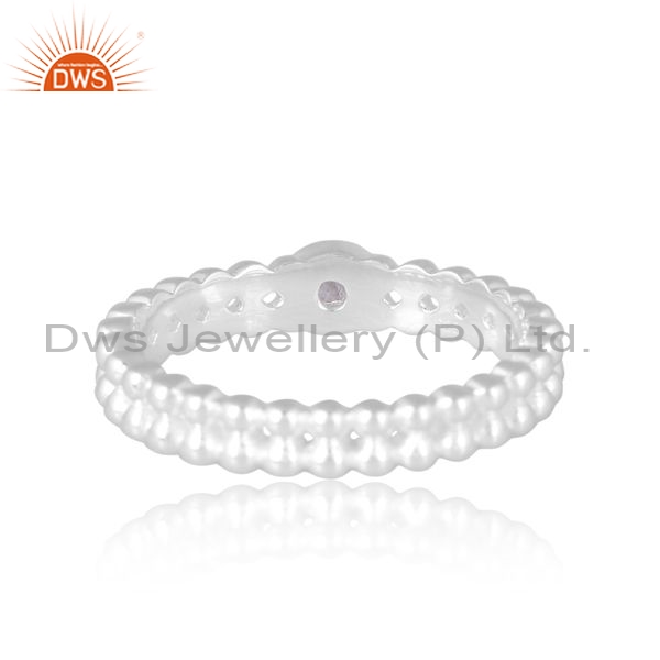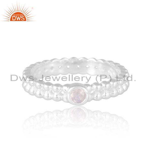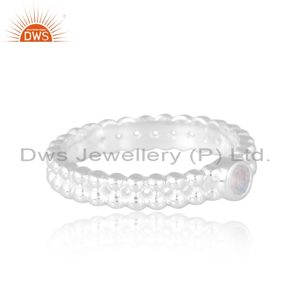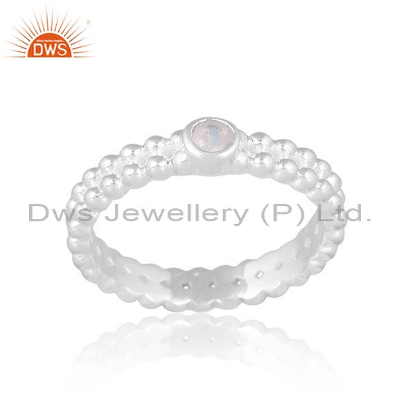 Silver Double Layer White Ring With Rainbow Moonstone