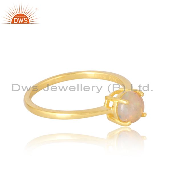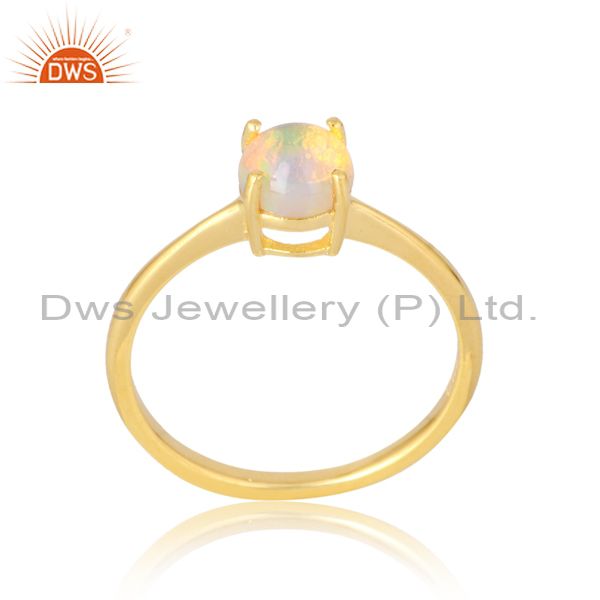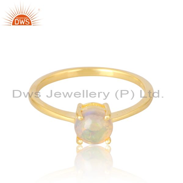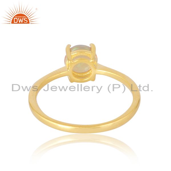 Silver Ethiopian Opal Cushion Round 18K Gold Plating Ring