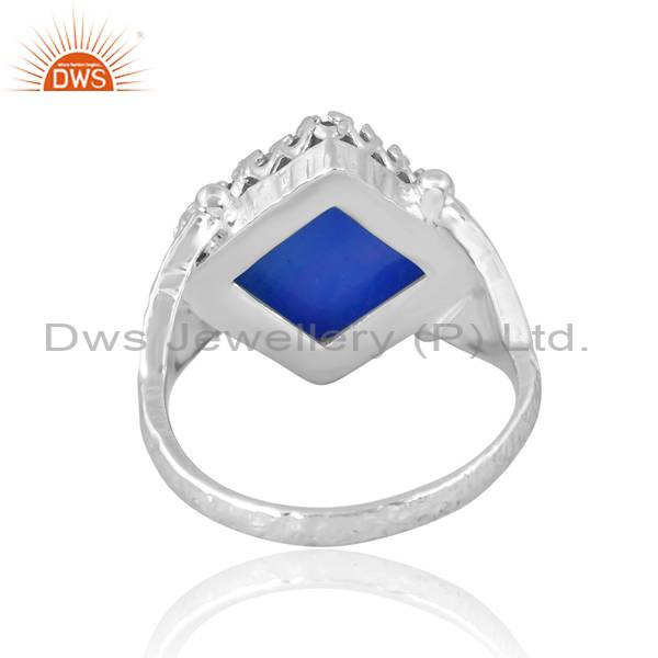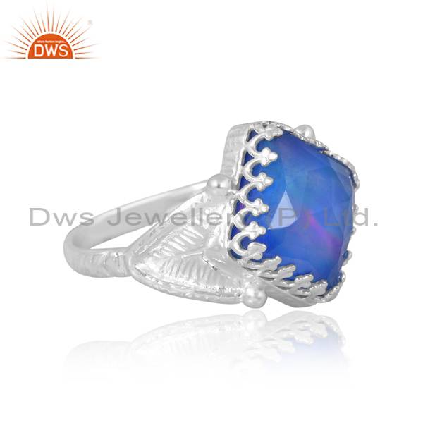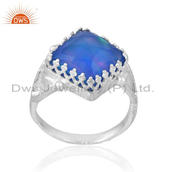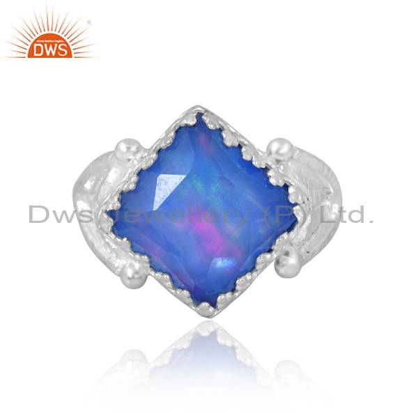 Silver Finger Ring With Square Cut Aurora Opal Blue For Men