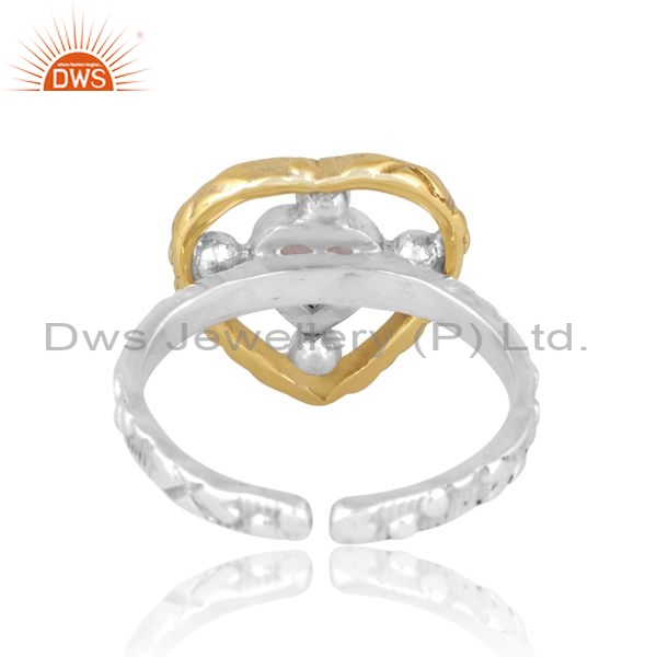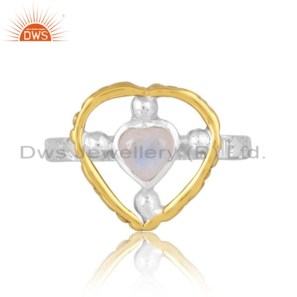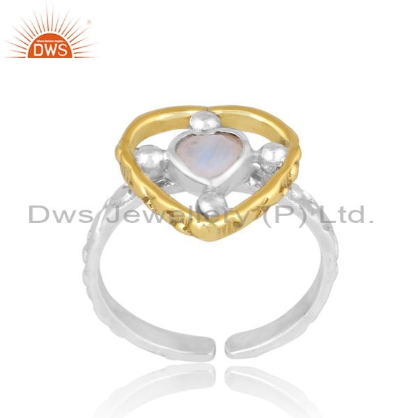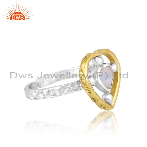Silver Gold And White Ring With Rainbow Moonstone Heart Cut