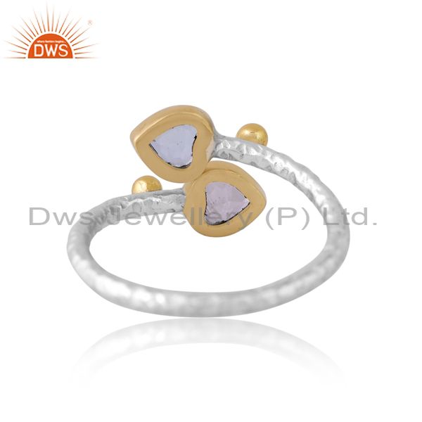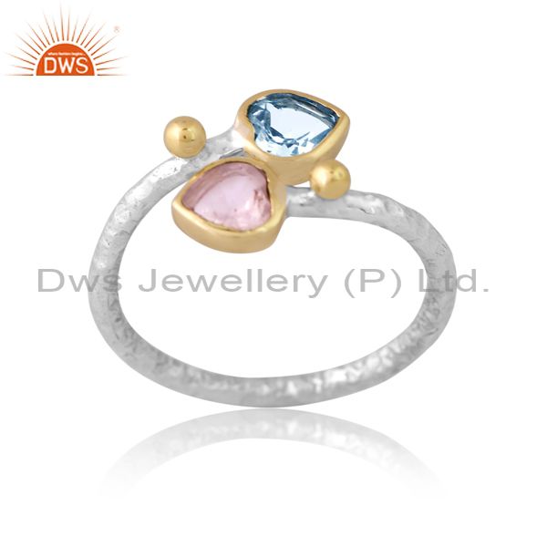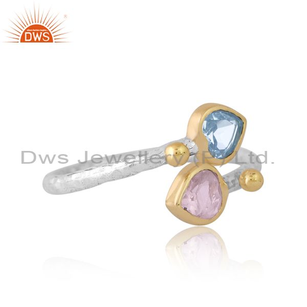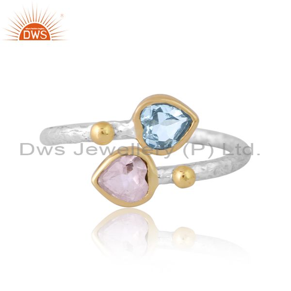 Silver Gold Ring With Blue Topaz And Rose Quartz