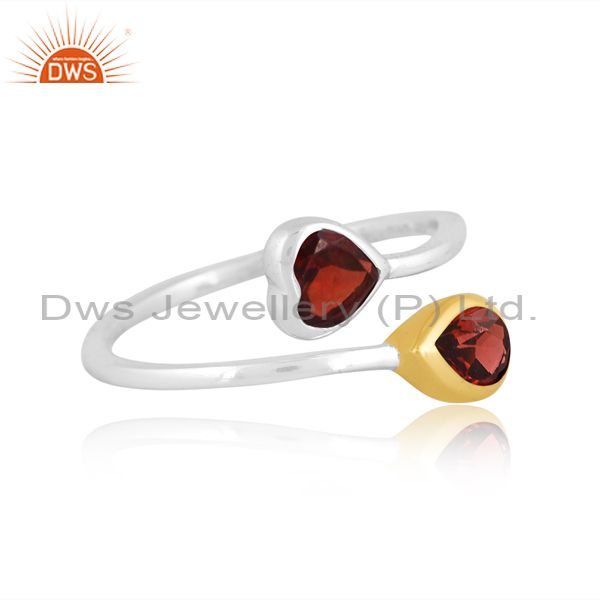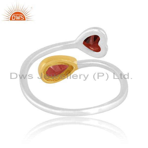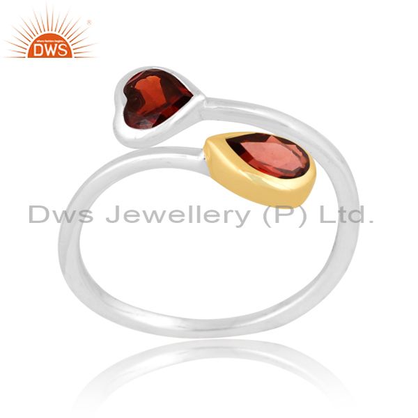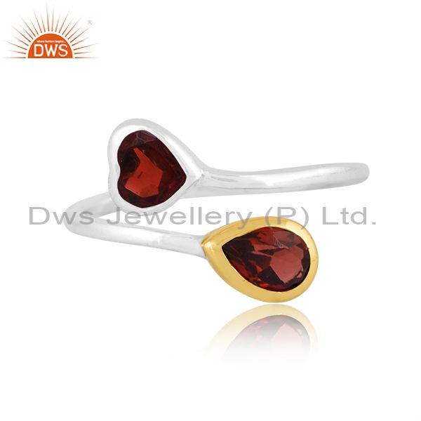 Silver Gold Ring With Garnet Cut Heart And Pear Stone