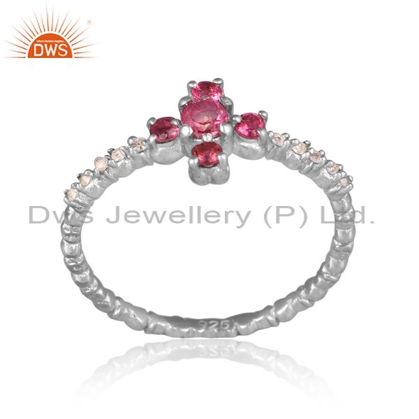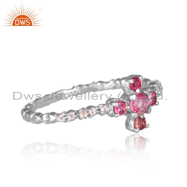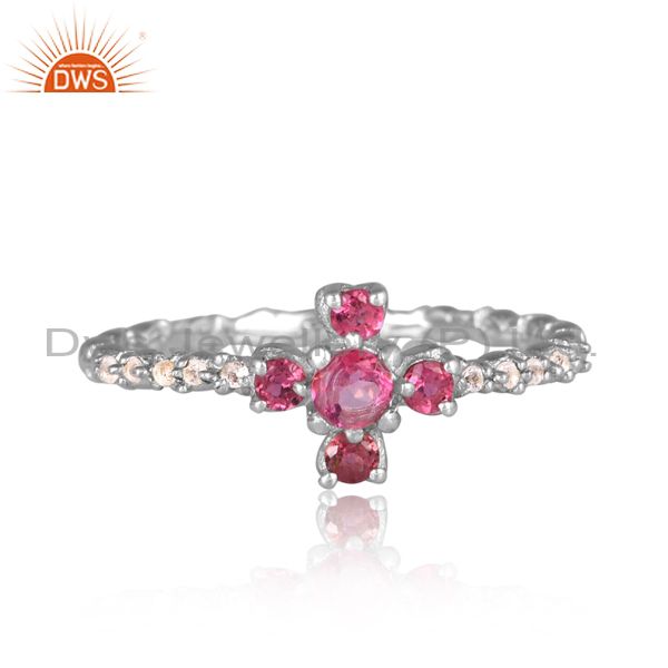 Silver Gold Ring With Pink Topaz, Tourmaline & White Topaz
