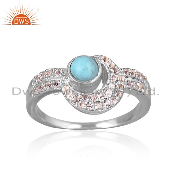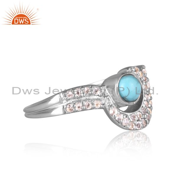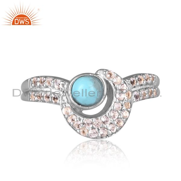 Silver Gold Ring With White Topaz & Arizona Turquoise