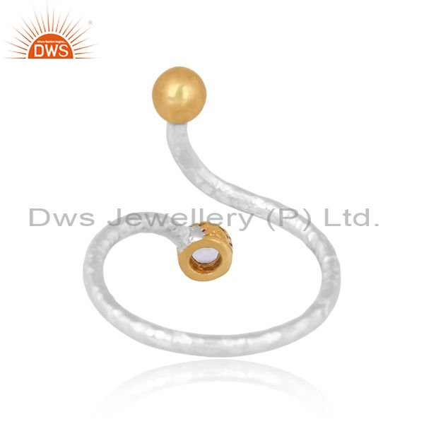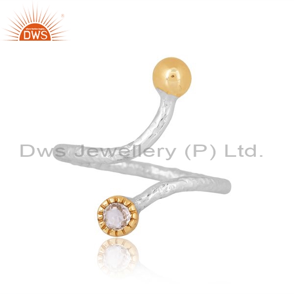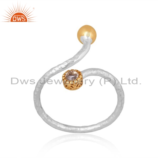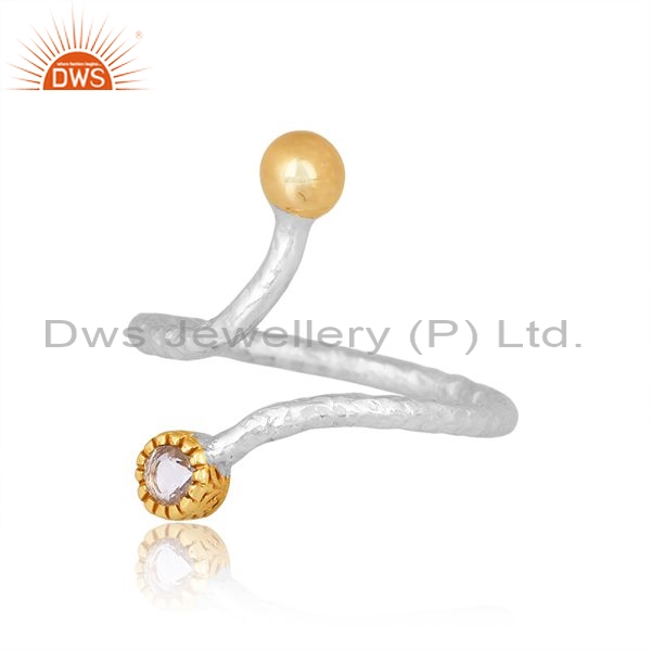 Silver Gold White Ring With Crystal Round Cut Quartz