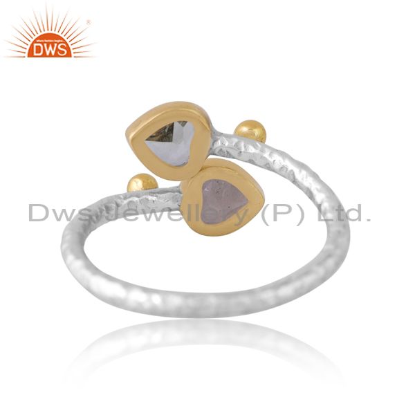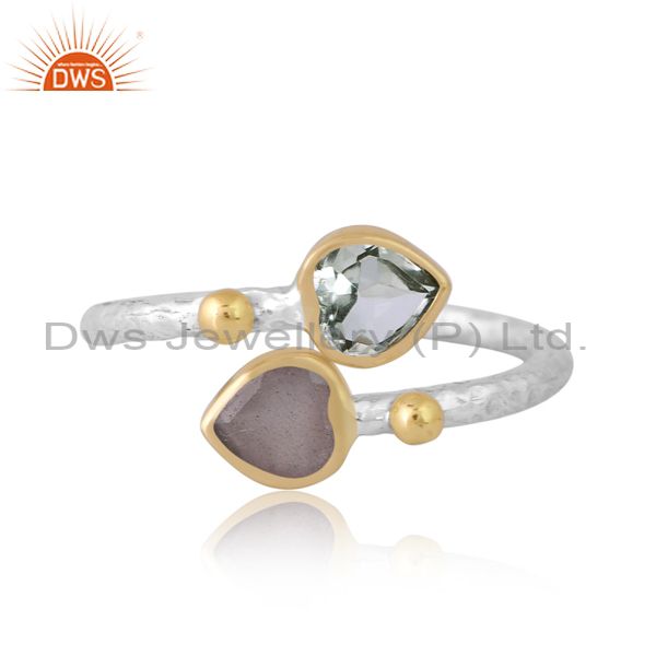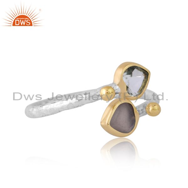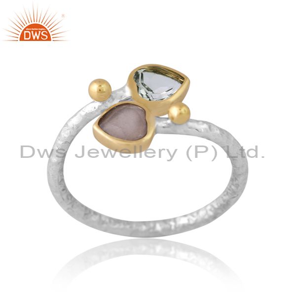 Silver Gold White Ring With Green Amethyst And Grey Moon