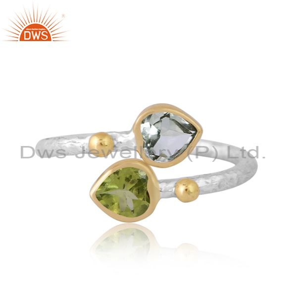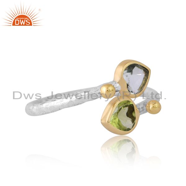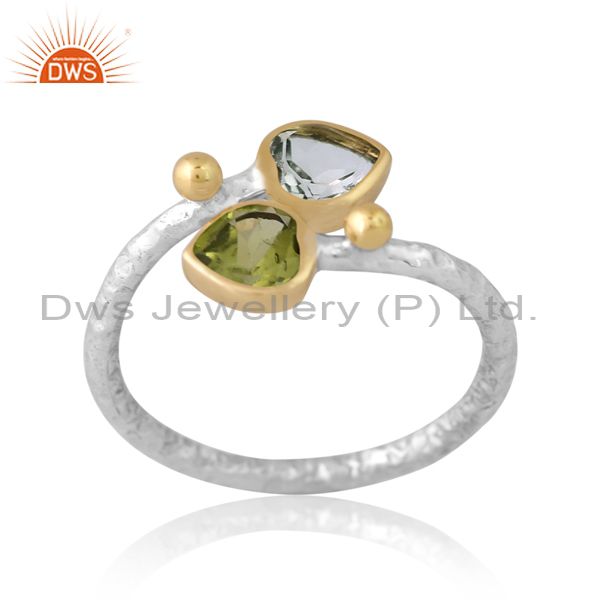 Silver Gold White Ring With Green Amethyst And Peridot