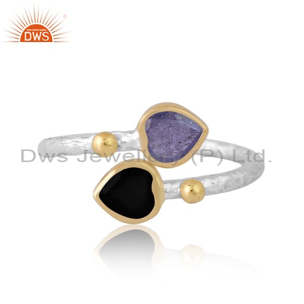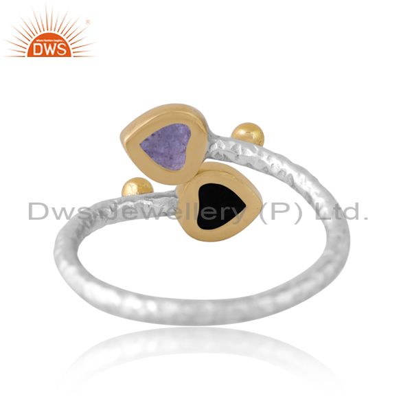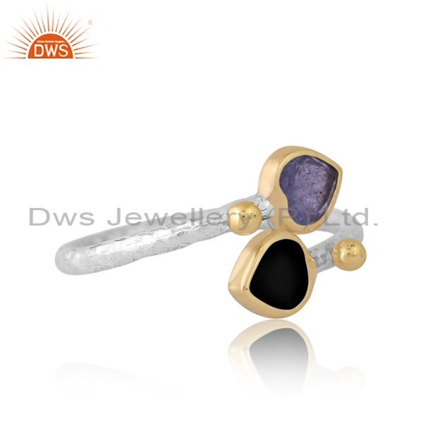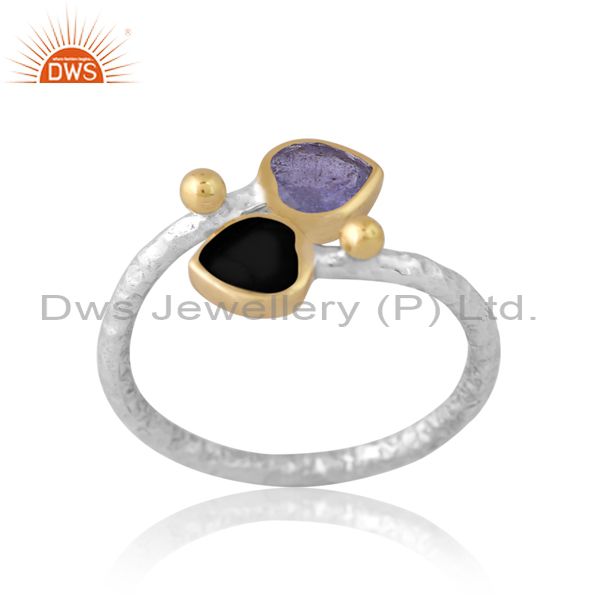 Silver Gold White Ring With Tanzanite And Black Onyx