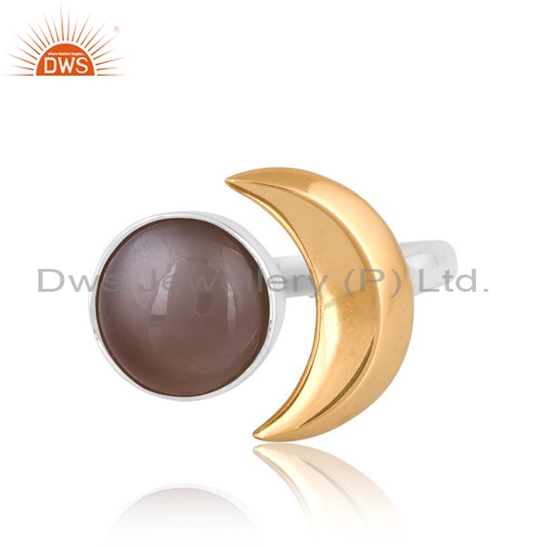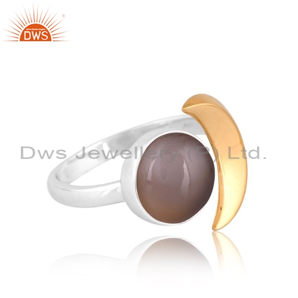 Silver Gray Moonstone Ring With Cabushion Round Cut