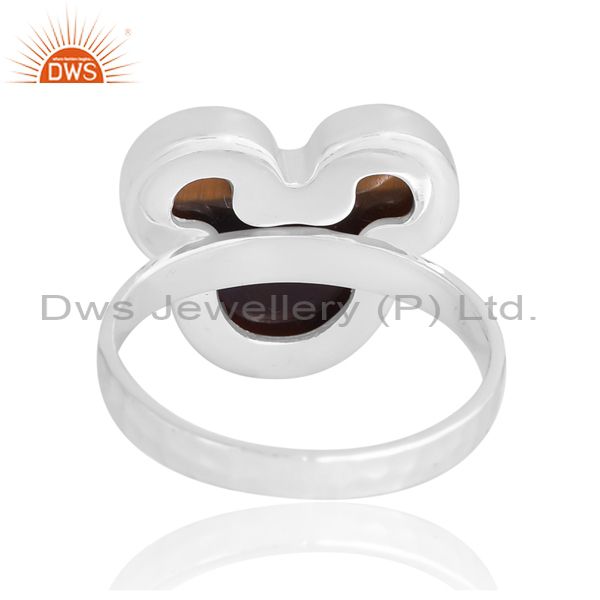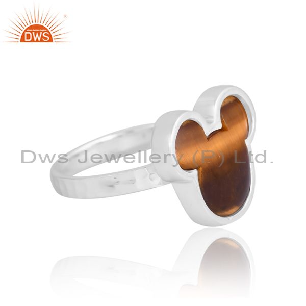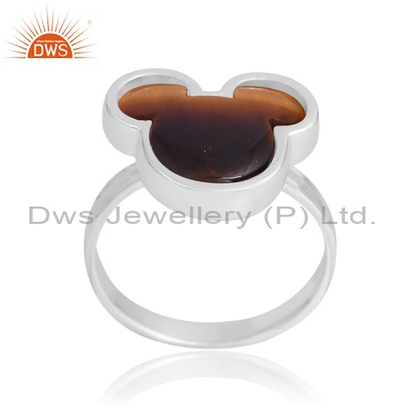 Silver Half Round Band With Tiger Eye Mickey Design On Top