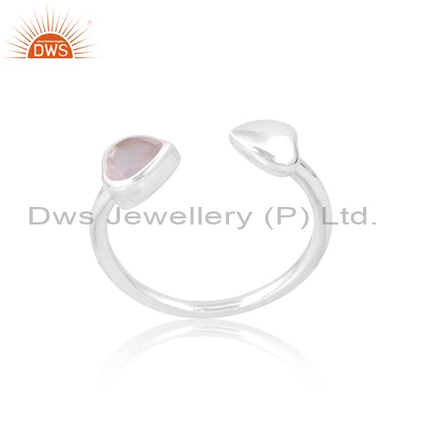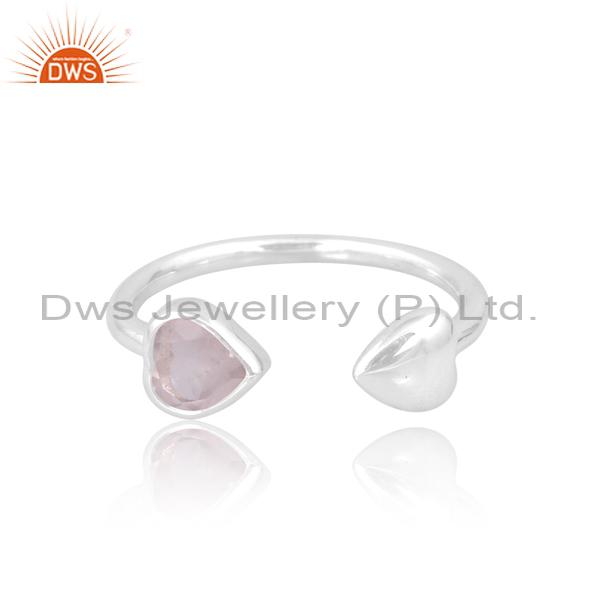 Silver Heart Ring For Engagement: Rose Quartz Love