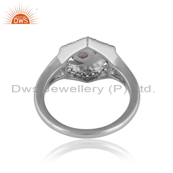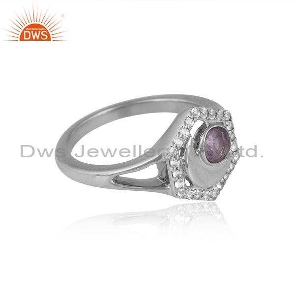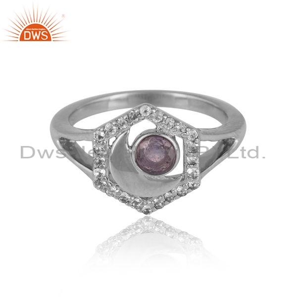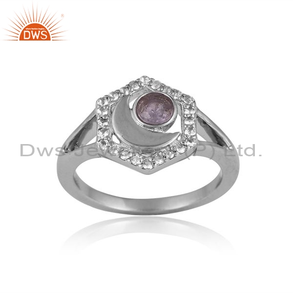 Silver Hexagon White Ring With Topaz And Tanzanite