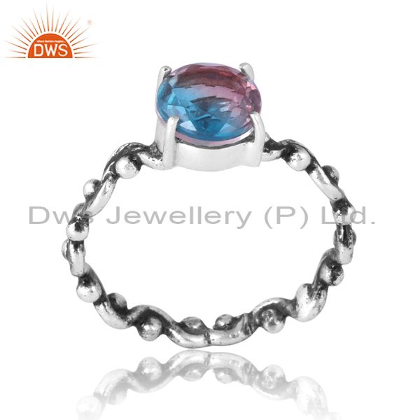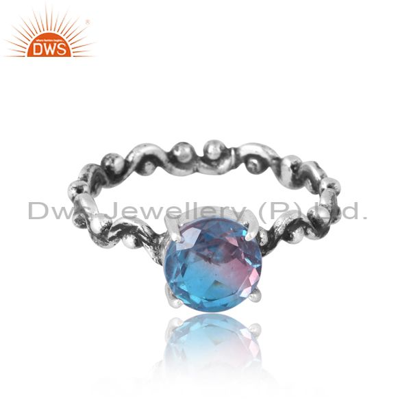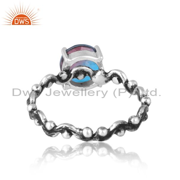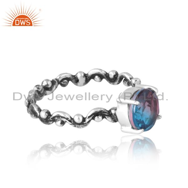 Silver Oxodized Alexandrite Doublet Quartz Cut Round Ring
