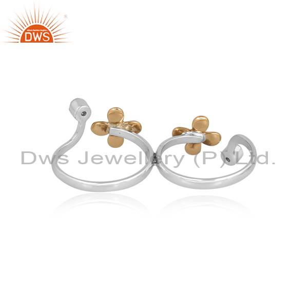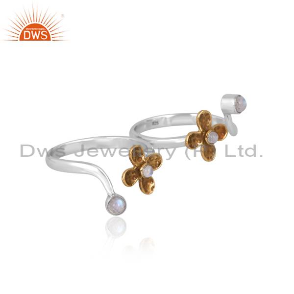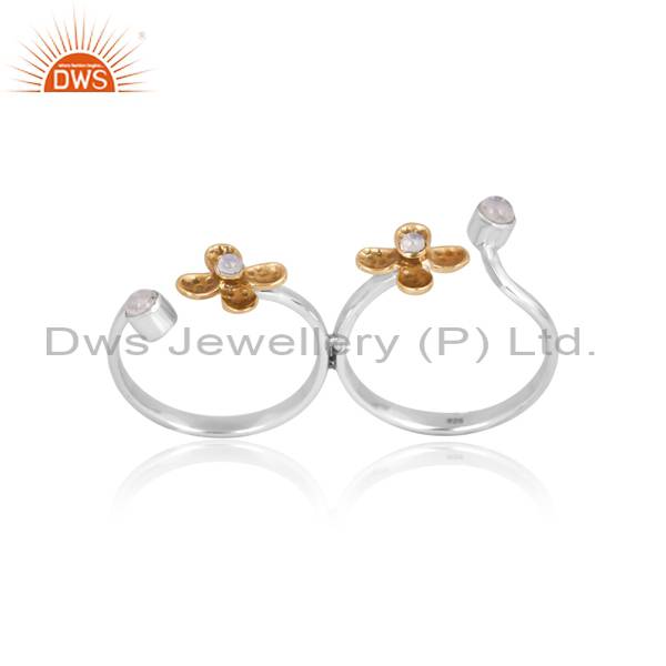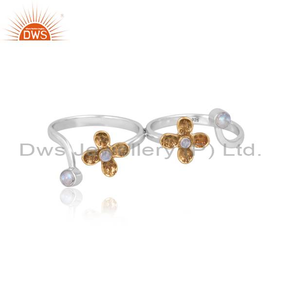 Silver Rainbow Moonstone: Exquisite Double Finger Ring
