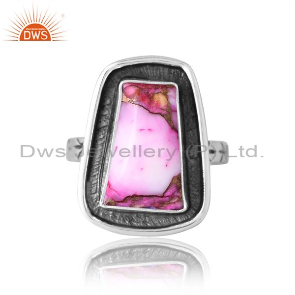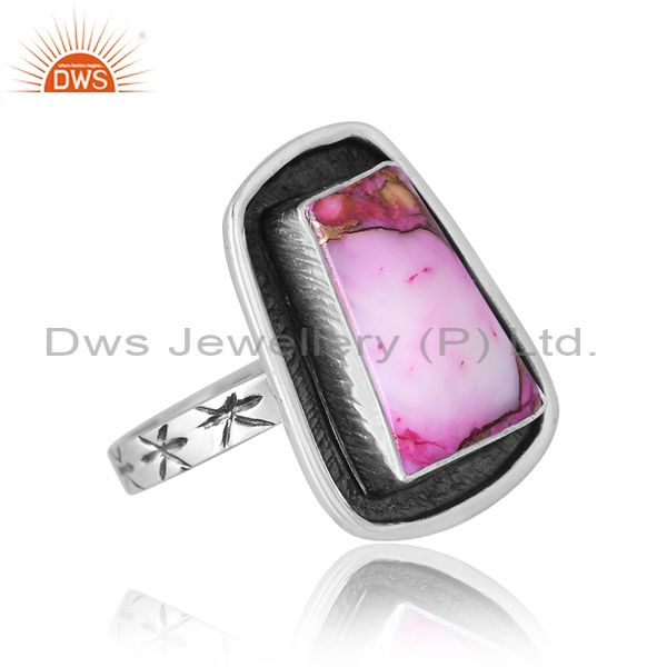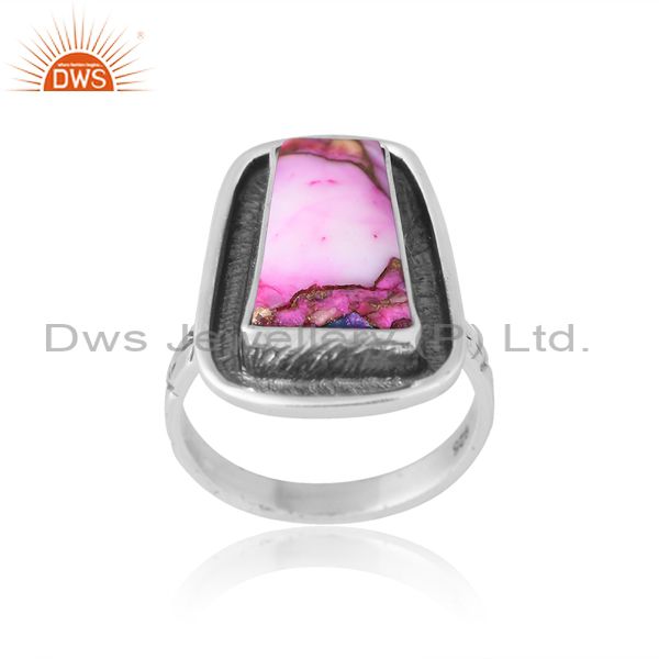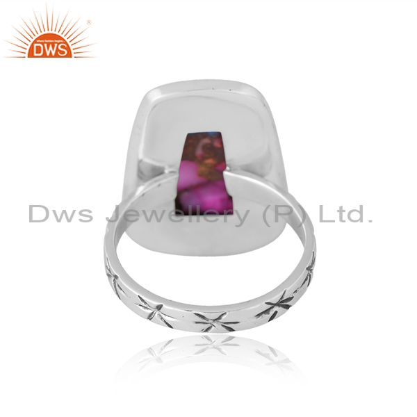 Silver Ring In Square Mojave Copper Purple Oyster Turquoise