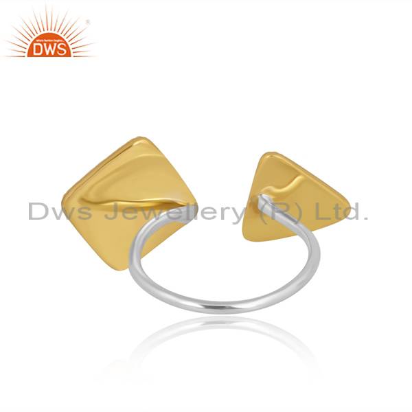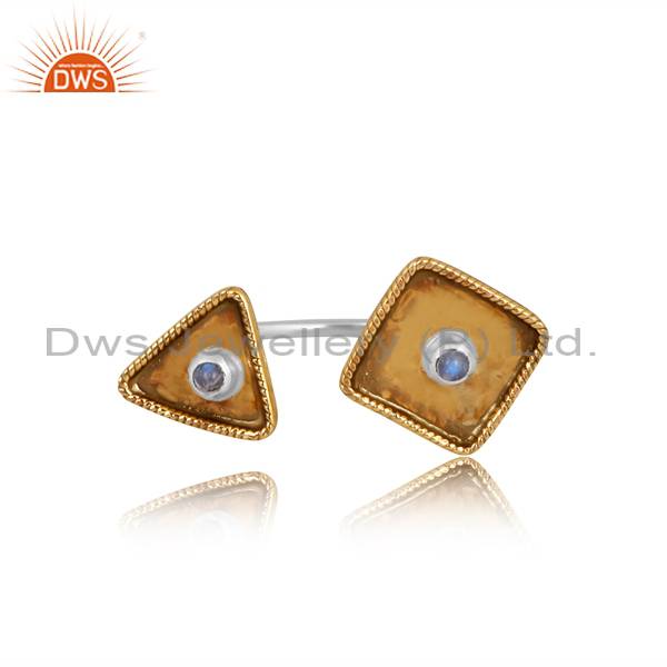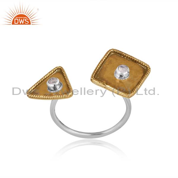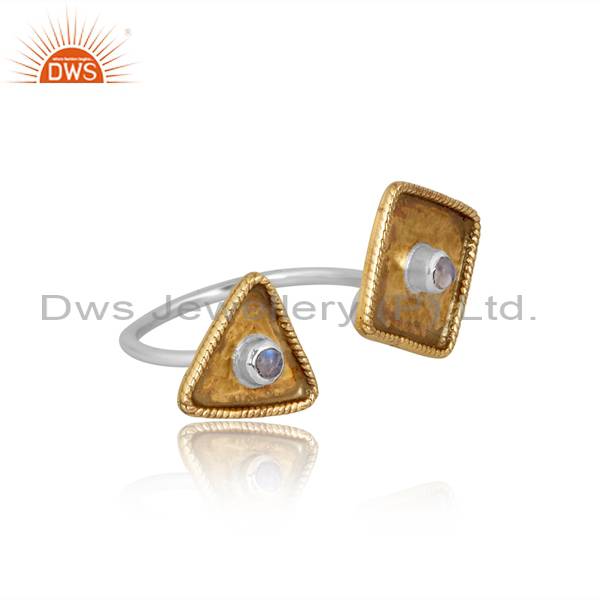 Silver Ring Adorned With Rainbow Moonstone & Brass Patti