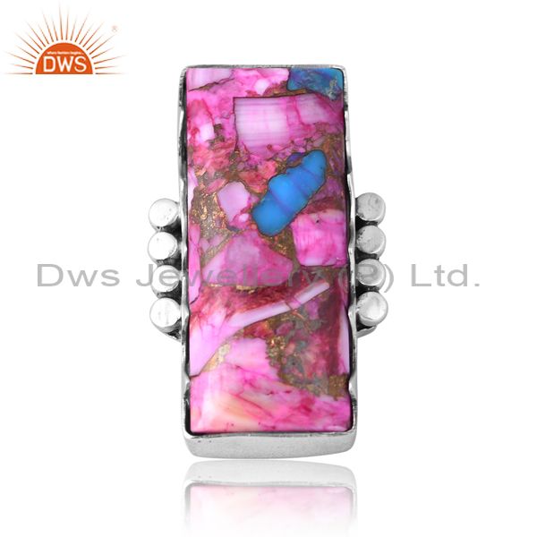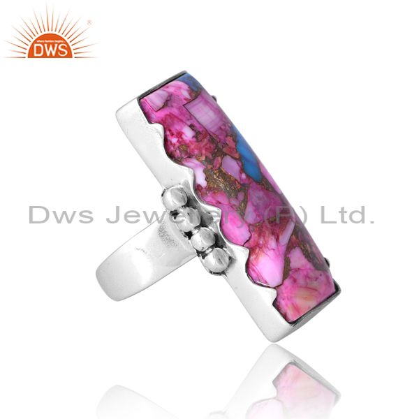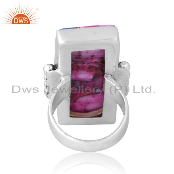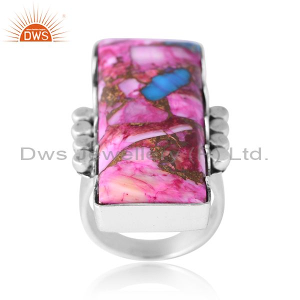 Silver Ring In Square Mojave Copper Purple Oyster Turquoise