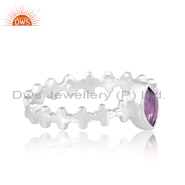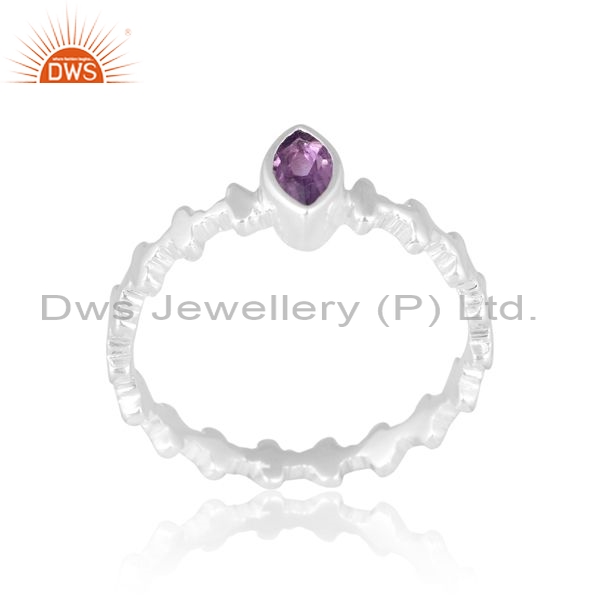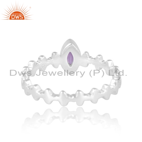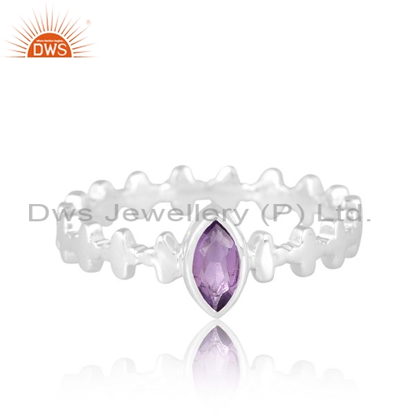 Silver Ring With Amethyst Marquise Cut And Band Design