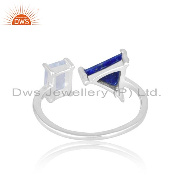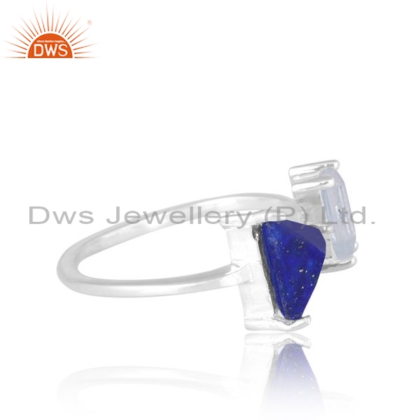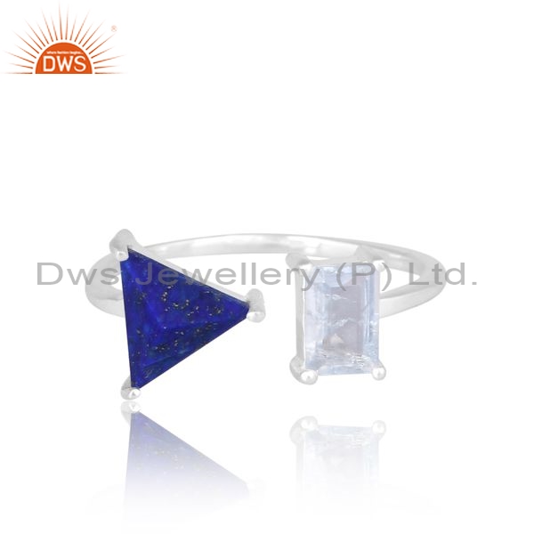 Silver Ring With Aquamarine And Lapiz Cut Triangle