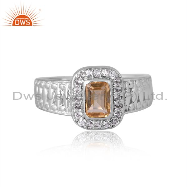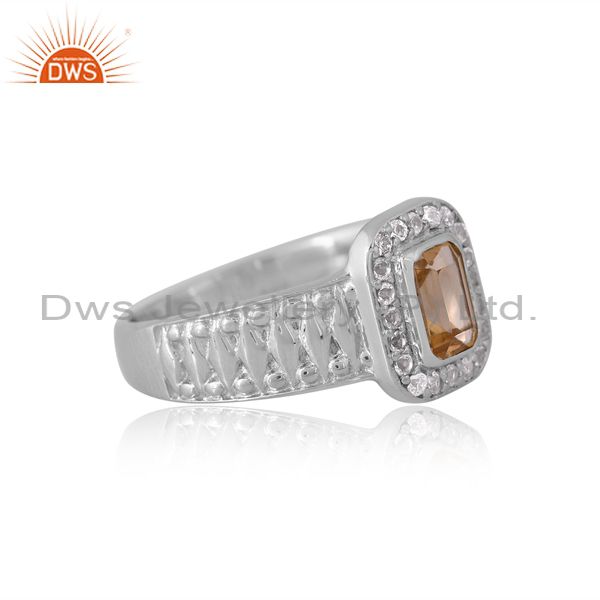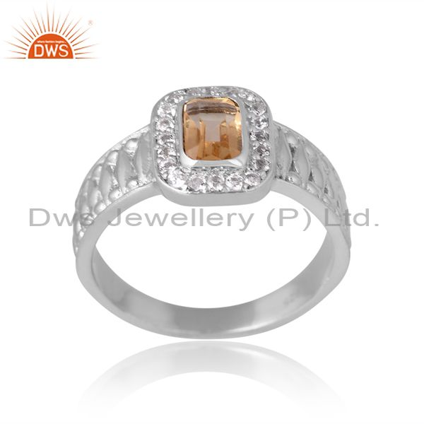 Silver Ring With Citrine Cut And White Topaz Round Cut