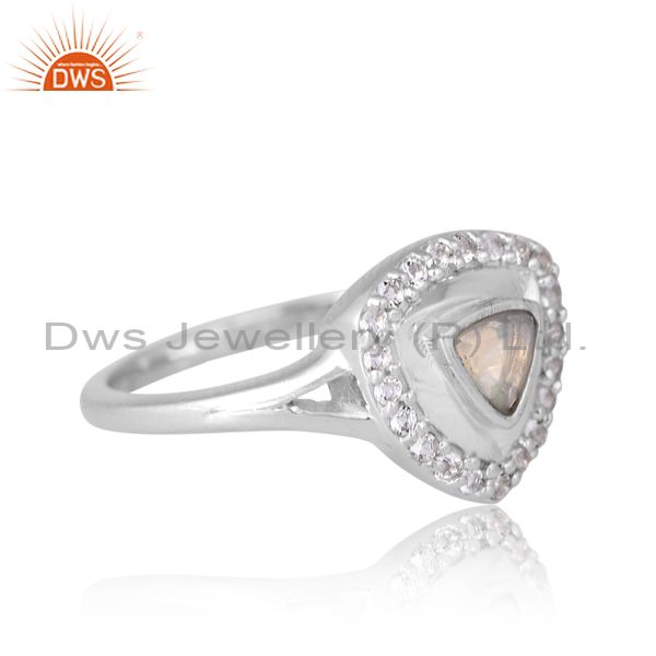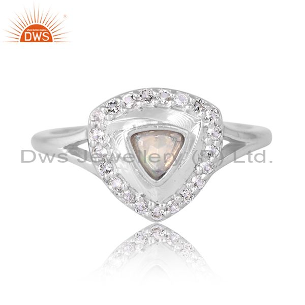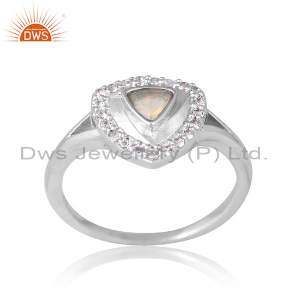 Silver Ring With Ethiopian Opal And Round White Topaz