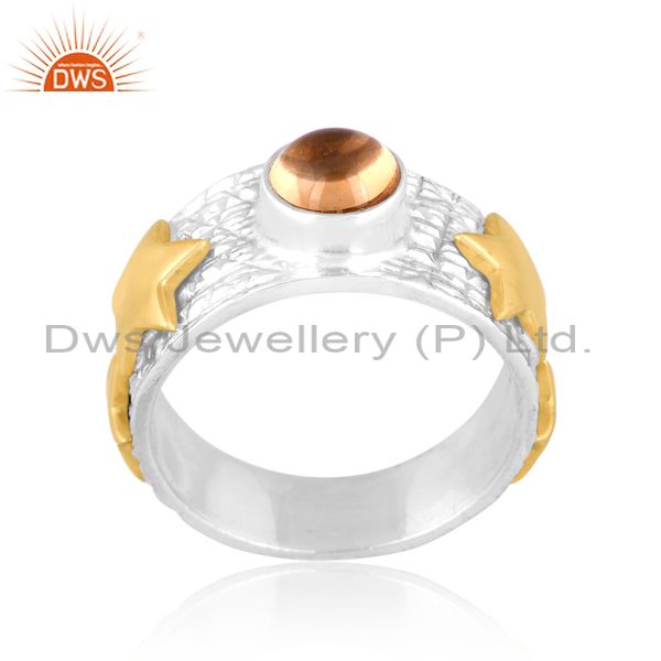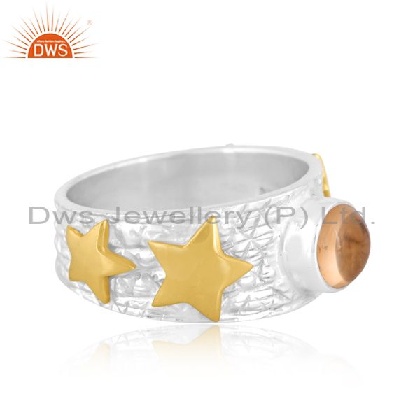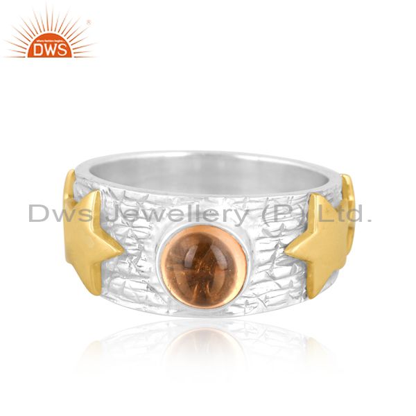 Silver Ring With Gold Star Highlights And Citrine Stone