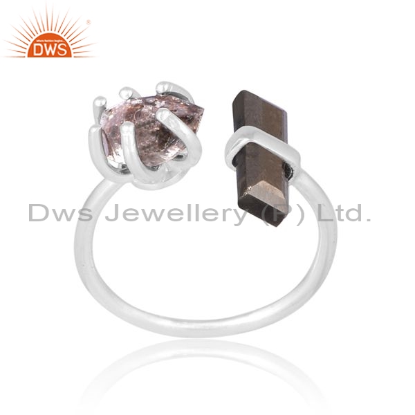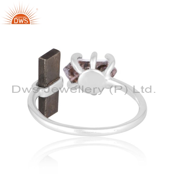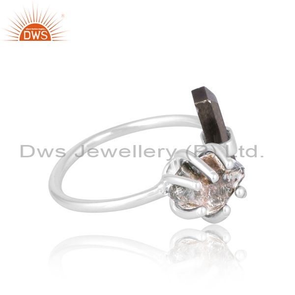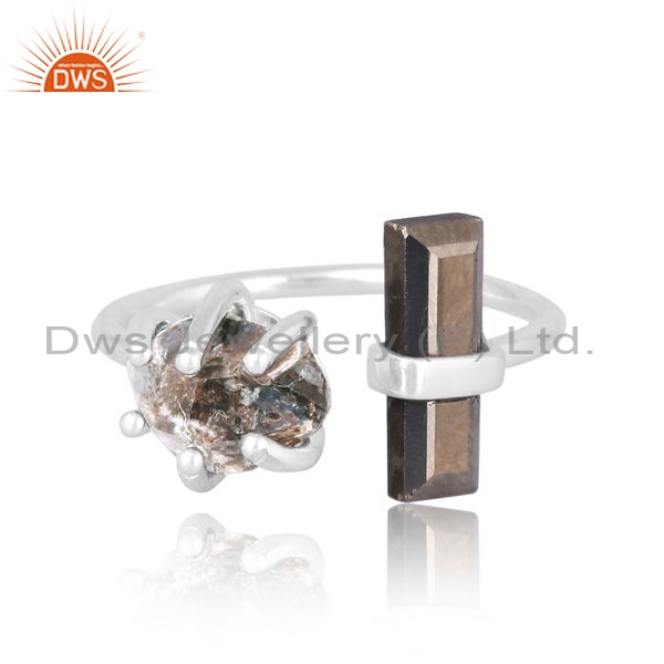 Silver Ring With Herkimer Diamond And Pyrite Stone