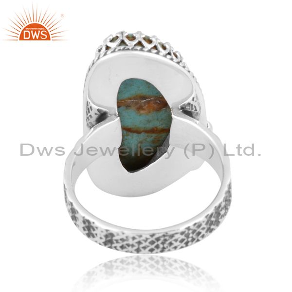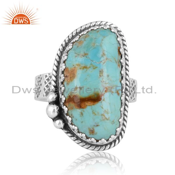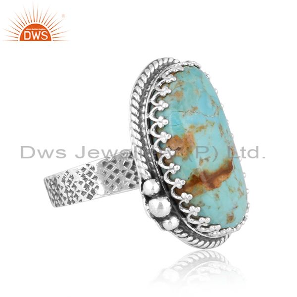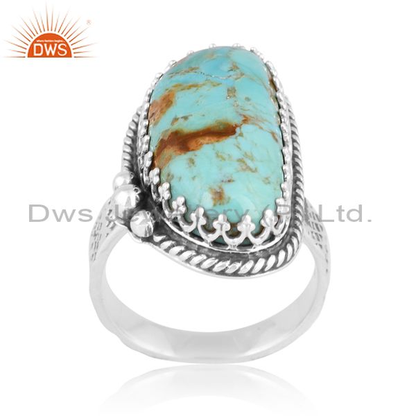 Silver Ring With Kingman Turquoise Cabochon D-Shaped Gem