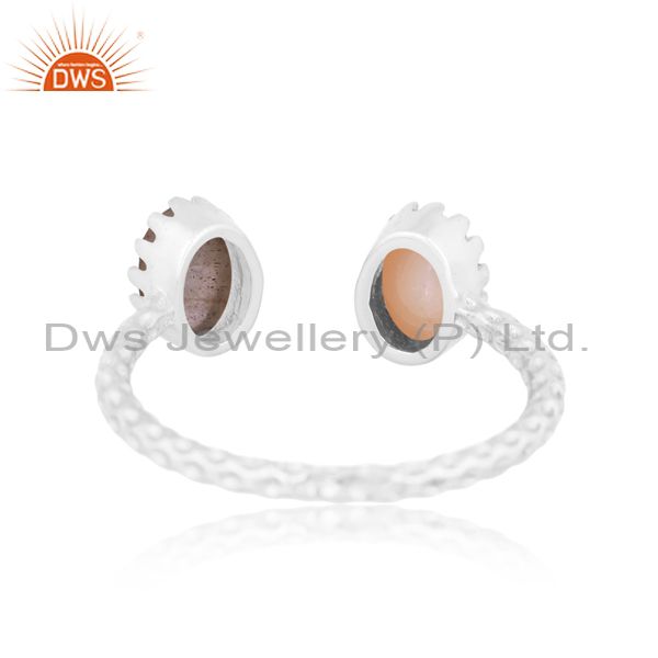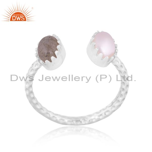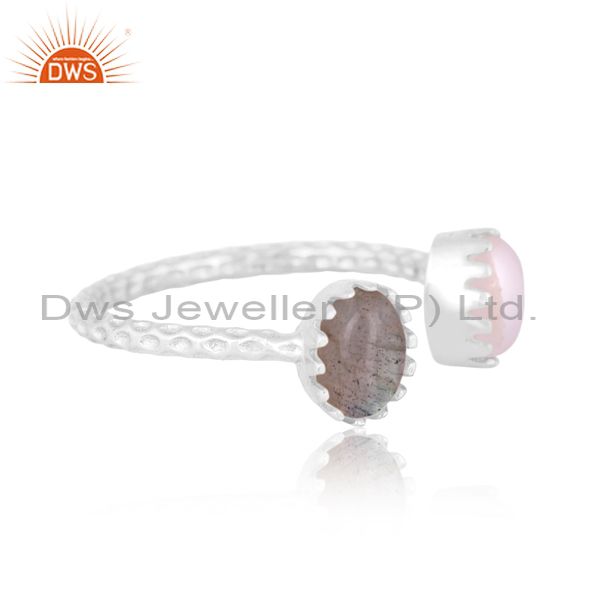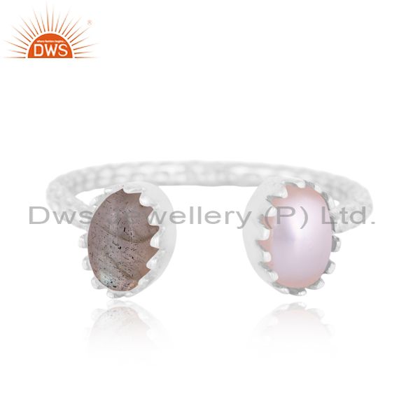 Silver Ring With Labradorite And Pearl Cabochon Oval Stone