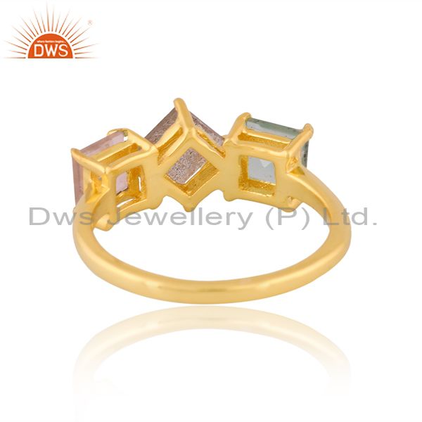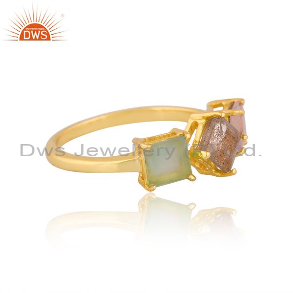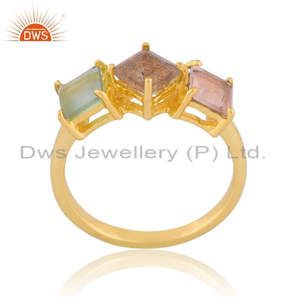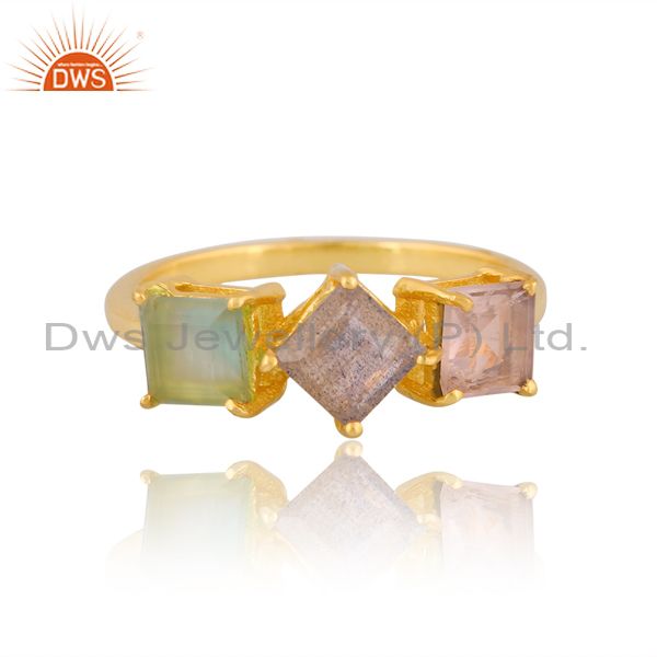 Silver Ring With Labradorite, Rose Quartz, Aqua Chalcedony