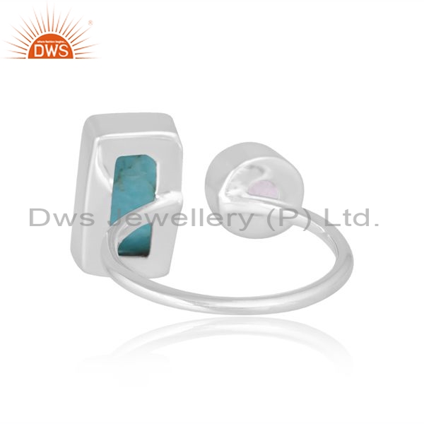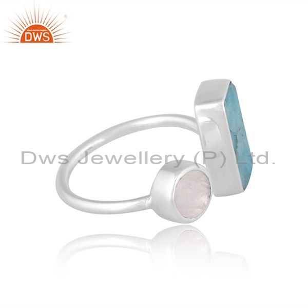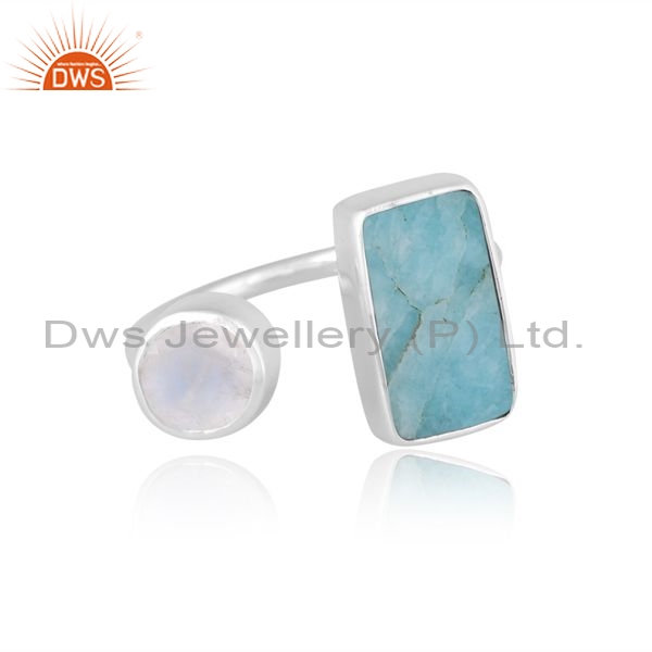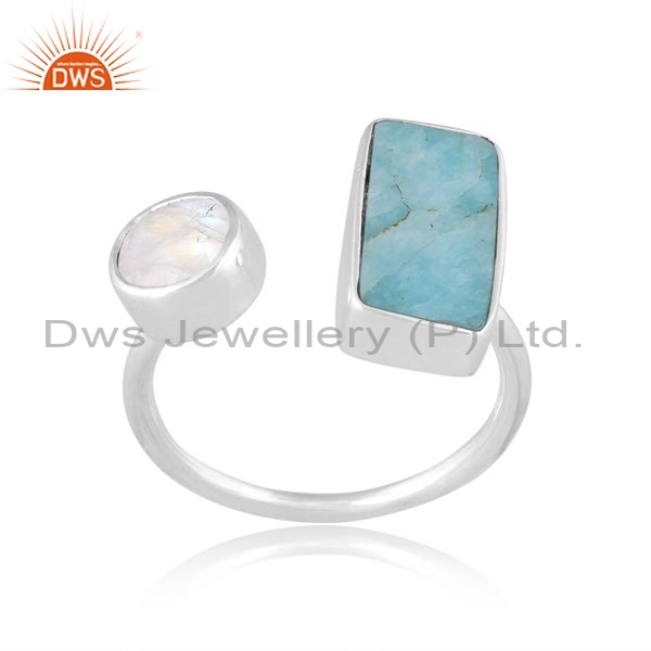 Silver Ring With Rainbow Moonstone And Mojave Copper