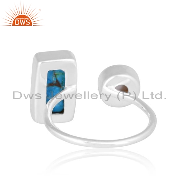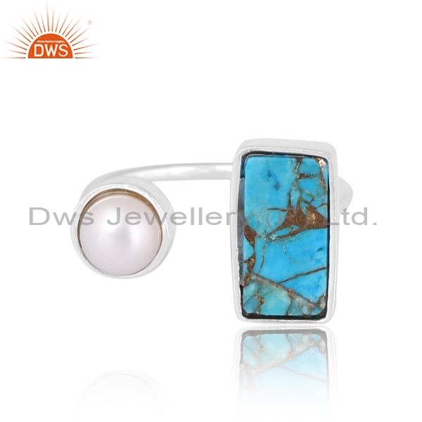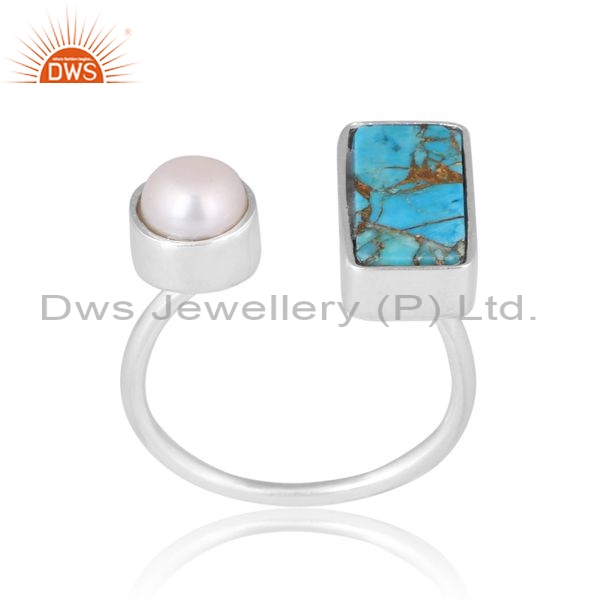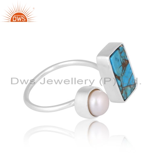 Silver Ring With Round Pearl And Mojave Copper Turquoise