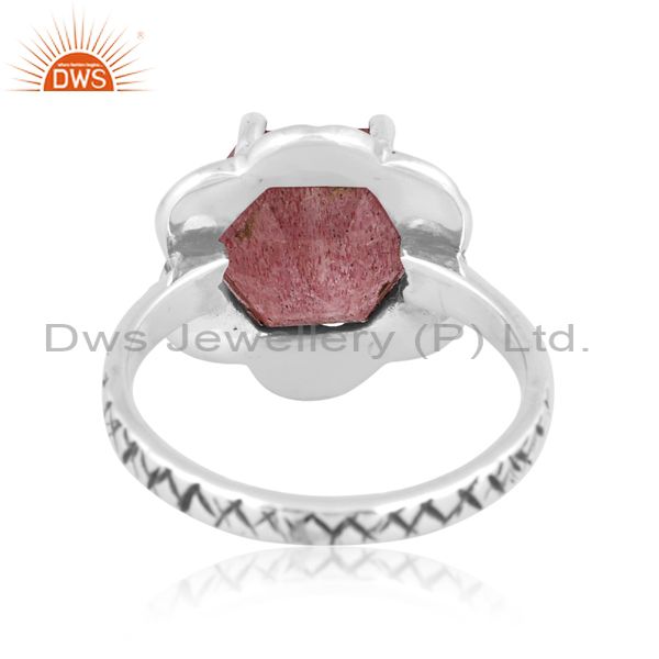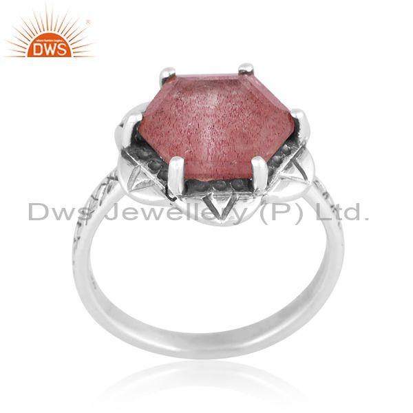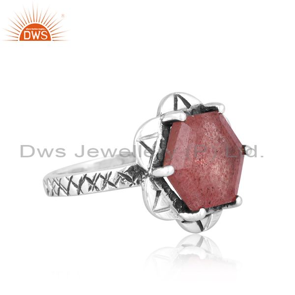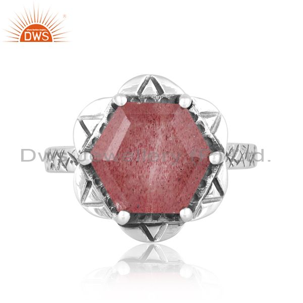 Silver Ring With Strawberry Quartz Cut Hexagon Stone