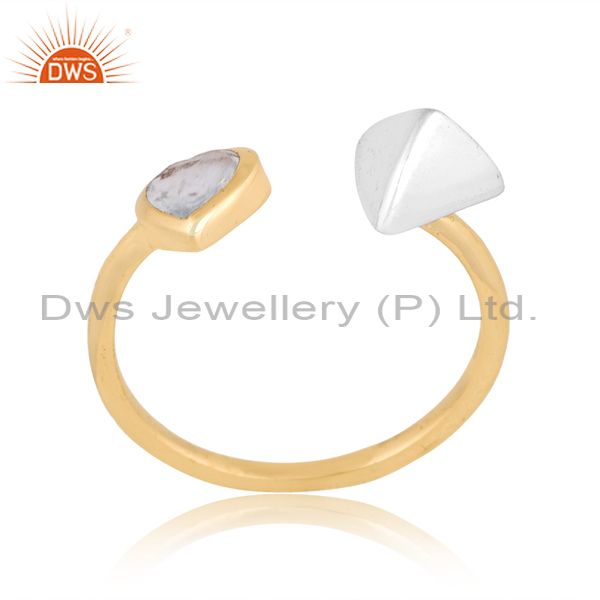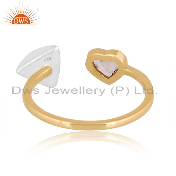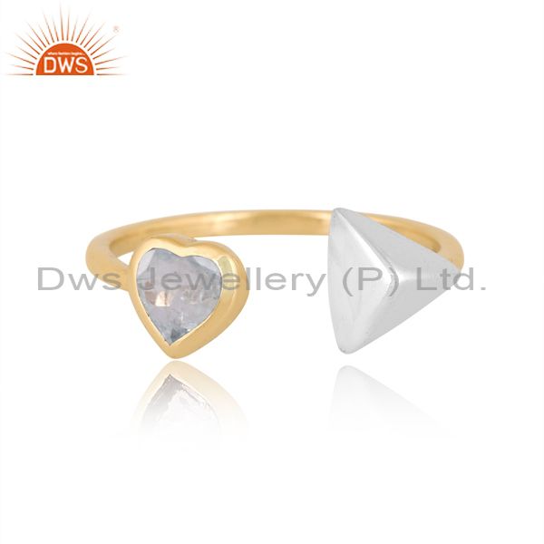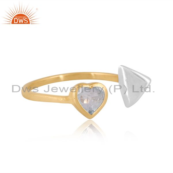 Silver Ring With White Triangle And Aquamarine Heart Stone