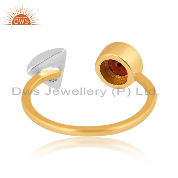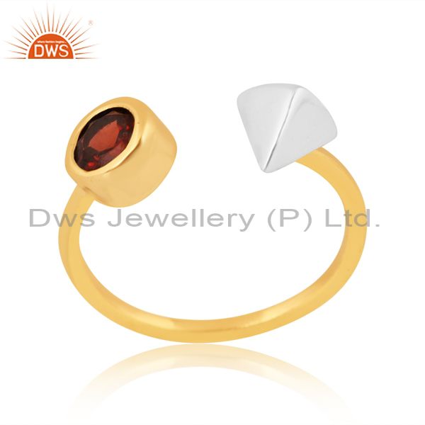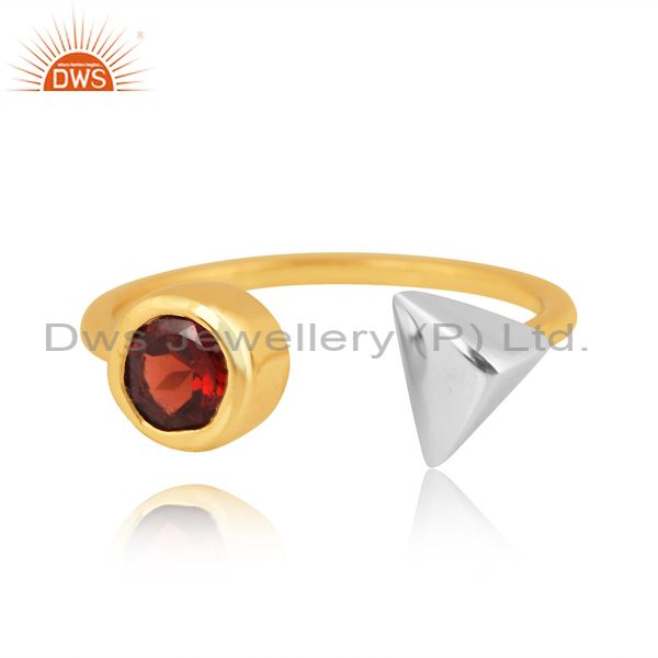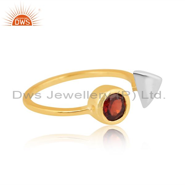 Silver Ring With White Triangle And Garnet Heart Stone
