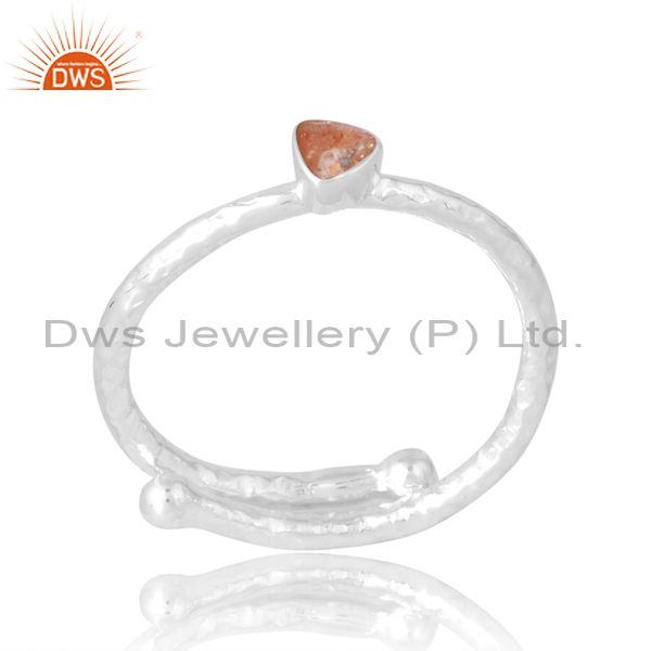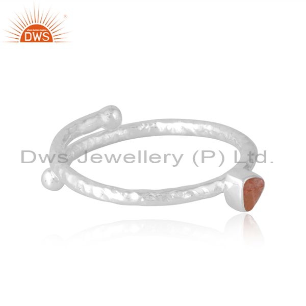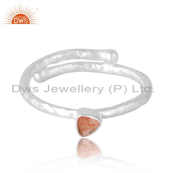 Silver Trillion Cut Sun Stone Band Unisex In Silver Metal