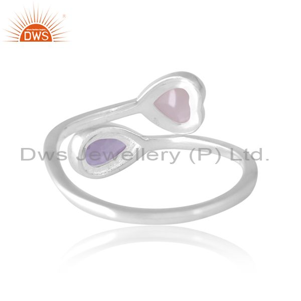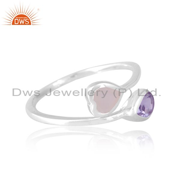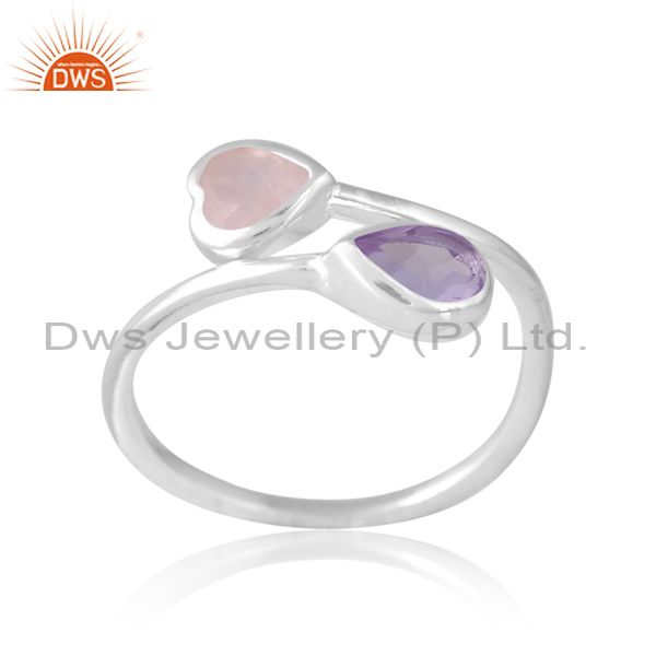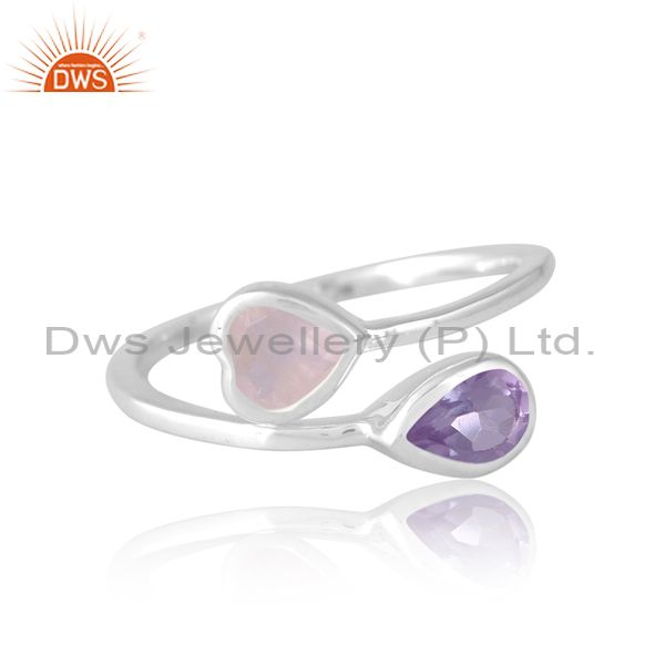 Silver White 18K Ring With Pink Amethyst And Rose Quartz