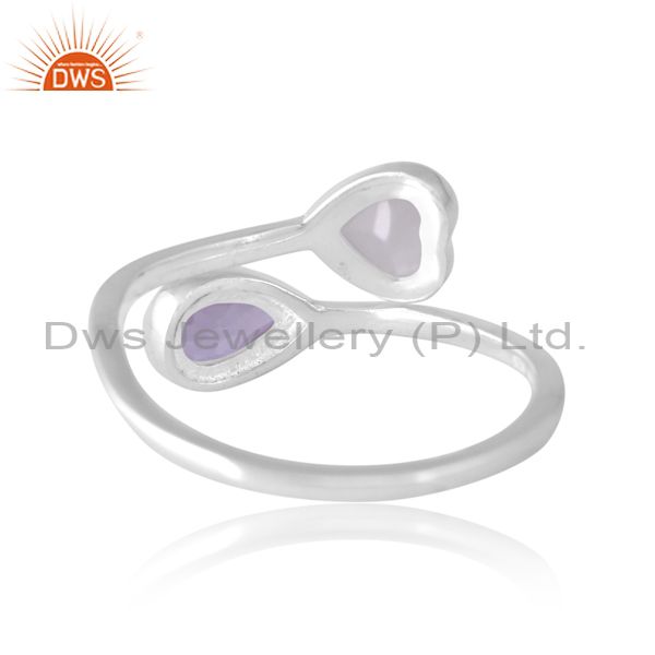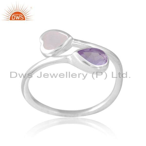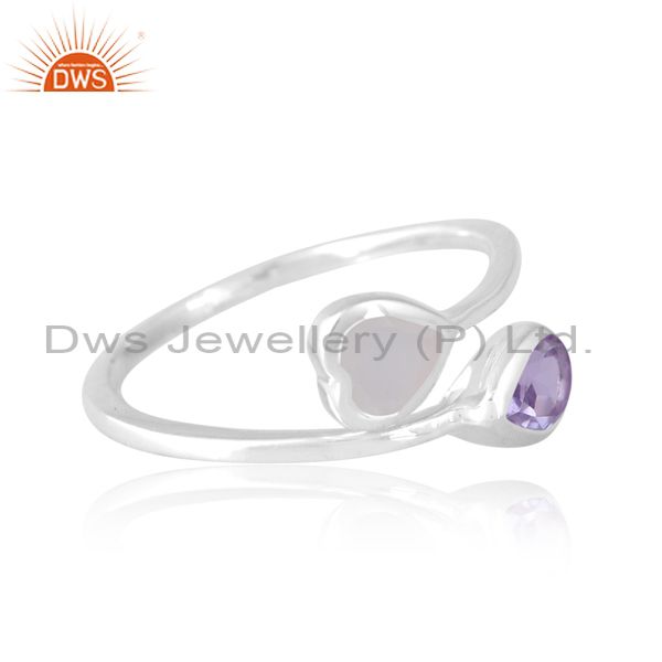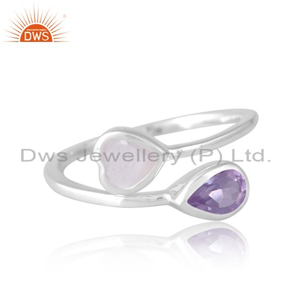 Silver White 18K Ring With White Moon And Pink Amethyst